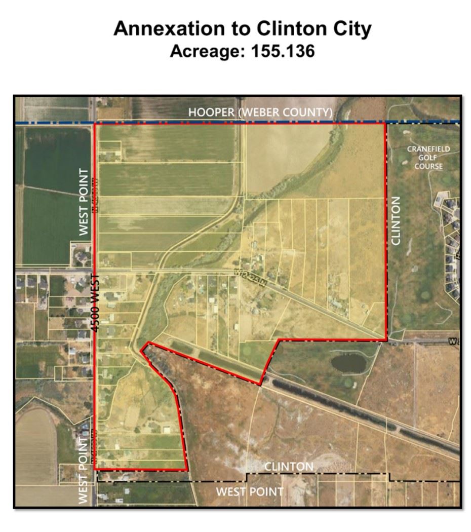 - On October 29, 2025, a petition proposing the annexation of real property located at approximately 2224 North 4500 West, Clinton, Utah, Davis County, and encompassing approximately 155.14 acres was filed with the City of Clinton by Mike Bastian (Lone Pine Development LLC) and Kraig Butt.